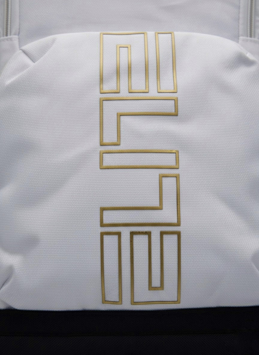 Este bolso Nike Elite en color blanco destaca por su estilo limpio, moderno y deportivo, ideal para quienes buscan funcionalidad con una estética premium. Su diseño vertical ofrece amplio espacio interior sin perder ligereza, acompañado de un bolsillo frontal con el distintivo logo “ELITE” en dorado y el icónico swoosh en la parte superior. Incluye compartimento principal de gran capacidad, bolsillos laterales de malla, cremalleras reforzadas y una base rígida que protege contra humedad y golpes. Perfecto para entrenamientos, universidad o uso diario.