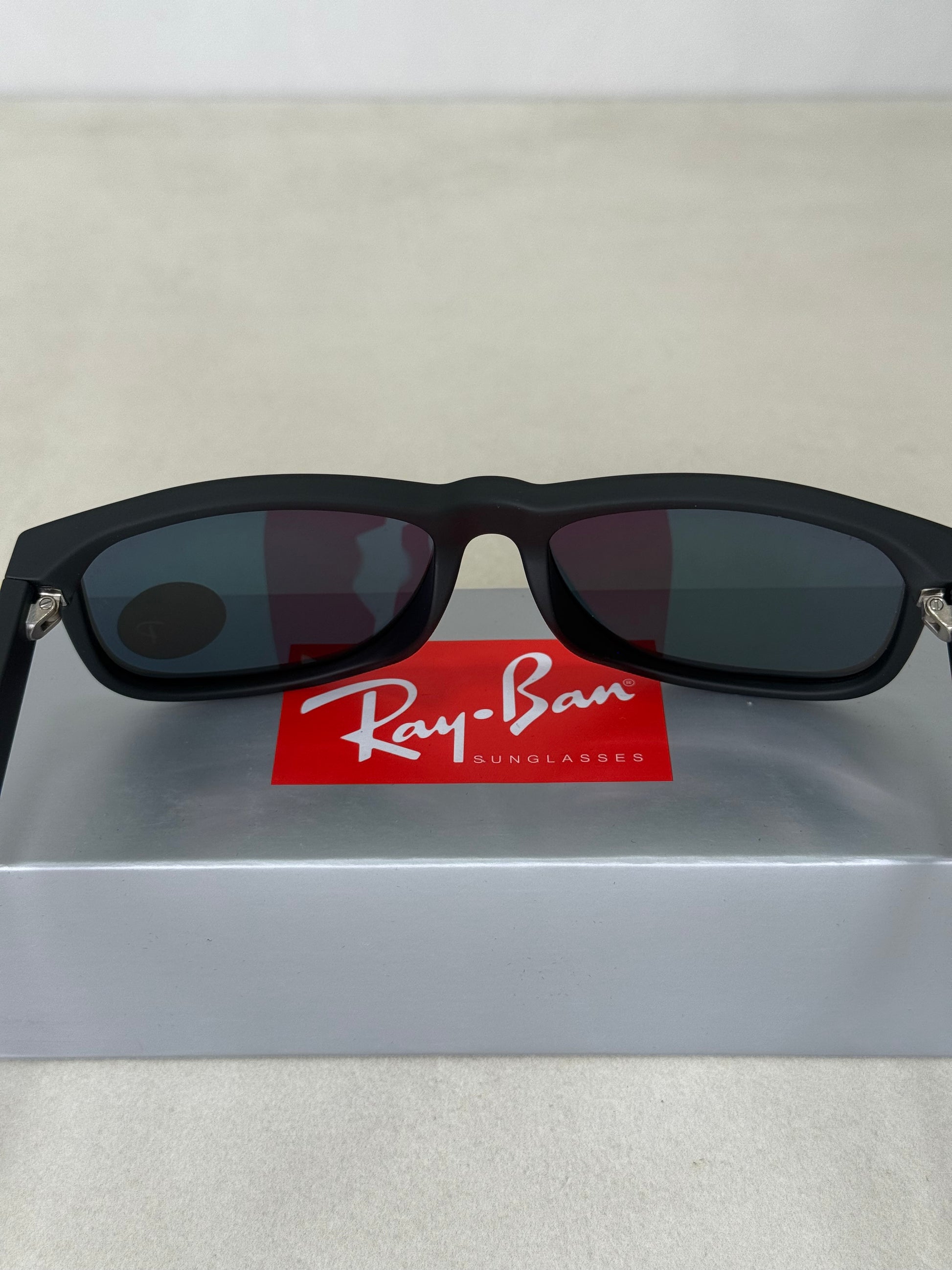 Acabados y detalles: logotipo de Ray-Ban en relieve en ambas varillas y grabado en la lente derecha, con el distintivo "P" de polarizado; incluye estuche oficial y paño de limpieza.